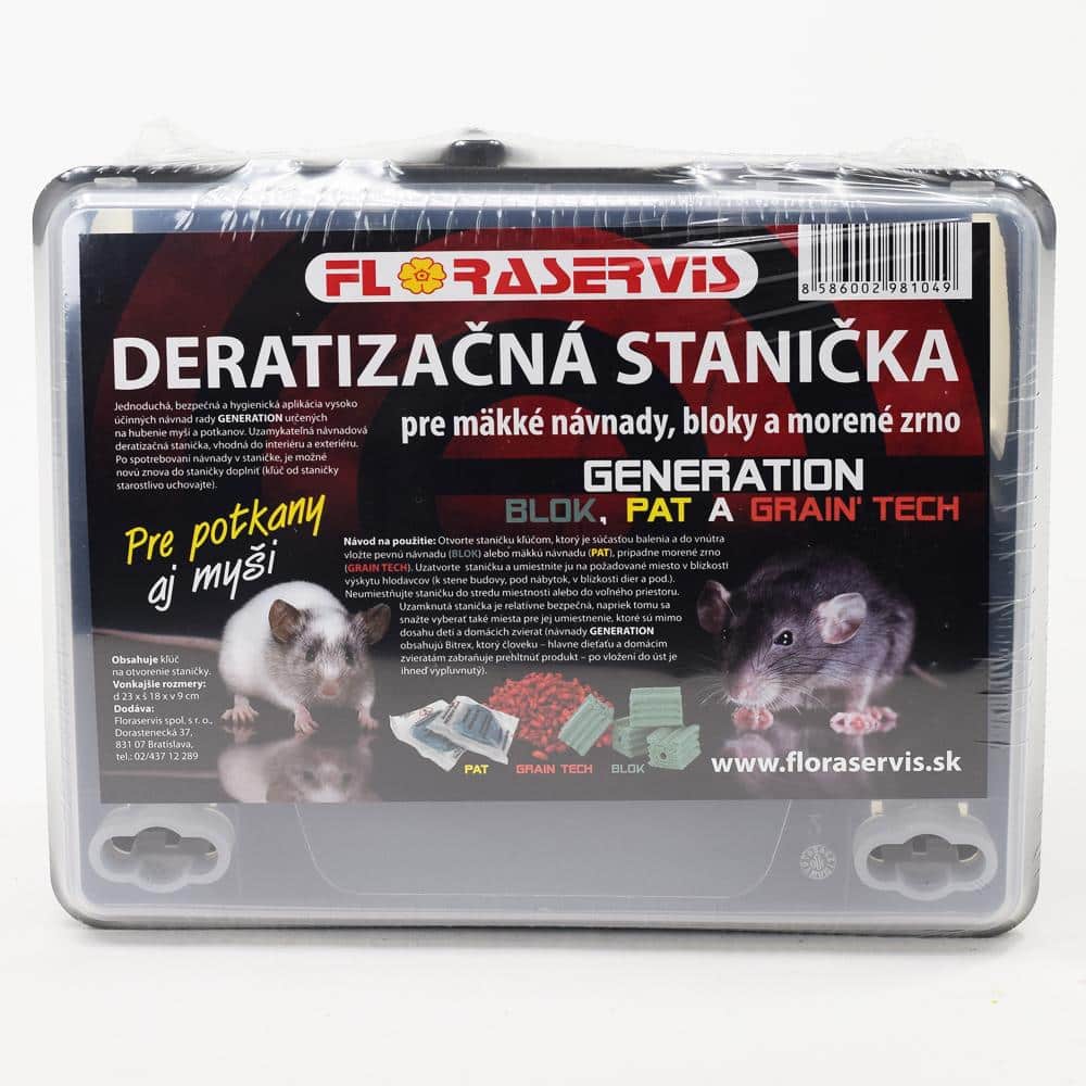 Obsahuje balenie aj jed na potkany? Nie, balenie obsahuje samotnú deratizačnú staničku a kľúč na jej otvorenie. Kvalitnú návnadu (napr. Generation Pat alebo bloky) si musíte zakúpiť samostatne v našom e-shope.